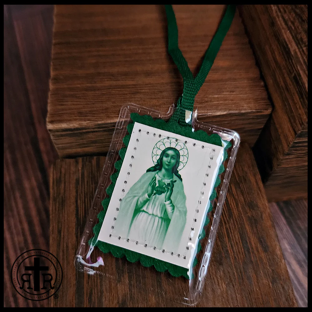 The Green Scapular is known for miracles of cures and conversions. It may be worn, kept in your wallet, in your clothing, or under your pillow. Have it blessed by a Priest, then say the prayers often (as shown in the accompanying pamphlet).