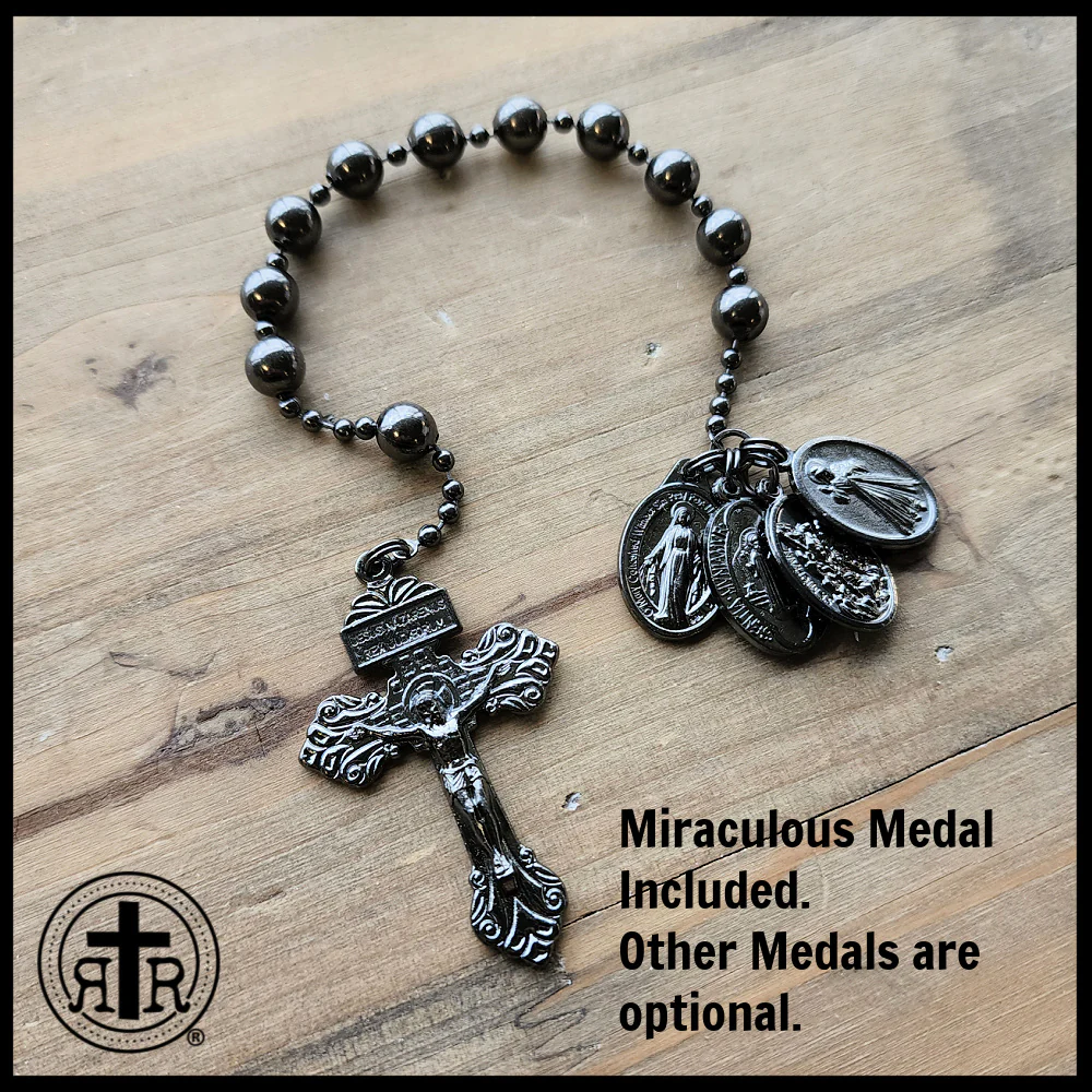 WWI Battle Beads - Gunmetal One Decade Pocket Rosary with Miraculous Medal