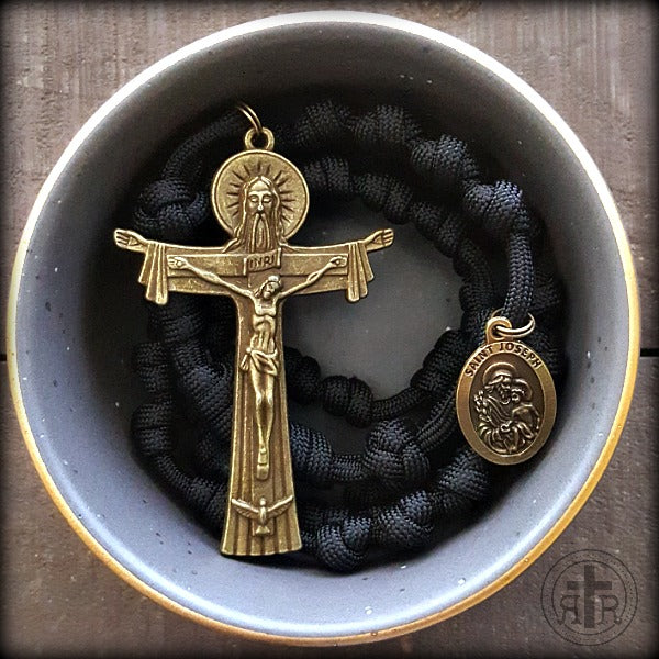 These can be very traditional - all black and all knots with a silver Crucifix or you can have one made that is highly customized with a unique design just for you. All knotted Combat Paracord Rosaries start at $54.99. Adding special extra large crucifixes or medallions, or extra decades will cost a little more.